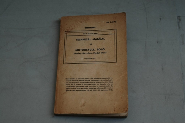 1943年発行のハーレーWLAのテクニカルマニュアルのオリジナル版です。(アメリカ政府発行)WL系をお待ちの方には必携の品です。